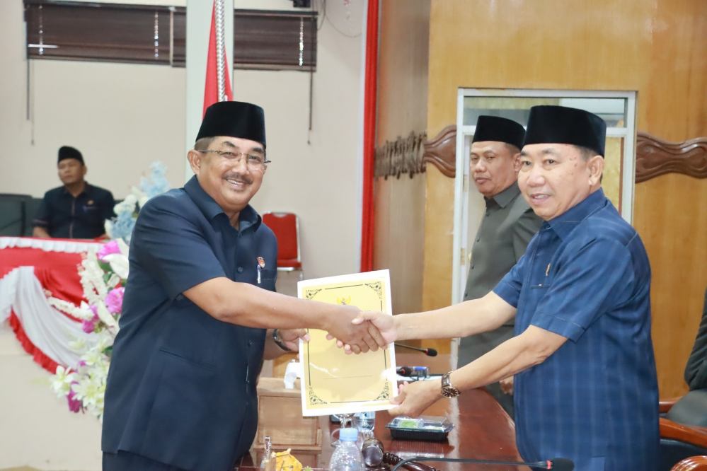 Bupati Tanjung Jabung Barat, Drs. H. Anwar Sadat, M. Ag, menyampaikan Nota Pengantar Rancangan Perubahan Kebijakan Umum Anggaran (KUA) dan Perubahan Prioritas serta Plafon Anggaran Sementara (PPAS) APBD Tahun Anggaran 2025 dalam Rapat Paripurna DPRD Kabupaten Tanjung Jabung Barat, Sabtu (9/8).