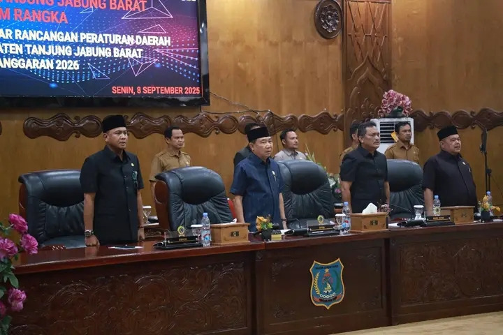 Rapat yang digelar di ruang paripurna DPRD Tanjung Jabung Barat tersebut dipimpin langsung Ketua DPRD Hamdani, S.E., didampingi Wakil Ketua I H. Muh. Sjafril Simamora, S.H., dan Wakil Ketua II Hasan Basri Harahap, S.H., serta hadiri oleh 20 Anggota DPRD, Kabag Ren Polres Tanjab Barat Kompol Ujang Supran, Kasi Intel Kajari Tanjab Barat M. Lutfi, S.H. M.H., Pasi Intel Kodim 0419 Tanjab Kapt. Elang Wibisono, Pejabat Tinggi Pratama dan Administrator lingkup Pemkab Tanjab Barat, pimpinan instansi vertikal, perbankan, BUMD, Insan Pers, serta undangan lainnya.Dalam sambutan yang dibacakan Sekretaris Daerah, Bupati menyampaikan apresiasi kepada DPRD yang telah mengagendakan pembahasan Ranperda APBD 2026. “Terima kasih kepada seluruh anggota dewan yang telah mengagendakan tahapan pembahasan terhadap Rancangan Perda tentang APBD Kabupaten Tanjung Jabung Barat Tahun Anggaran 2026,” ujarnya.