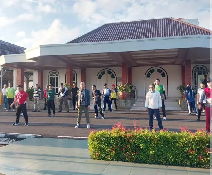 Kegiatan rutin ini diikuti para Asisten, Kepala OPD, Kabag, serta seluruh ASN. Senam dipandu oleh instruktur profesional Ferry Amorta dan berlangsung dengan tertib serta penuh kebersamaan.