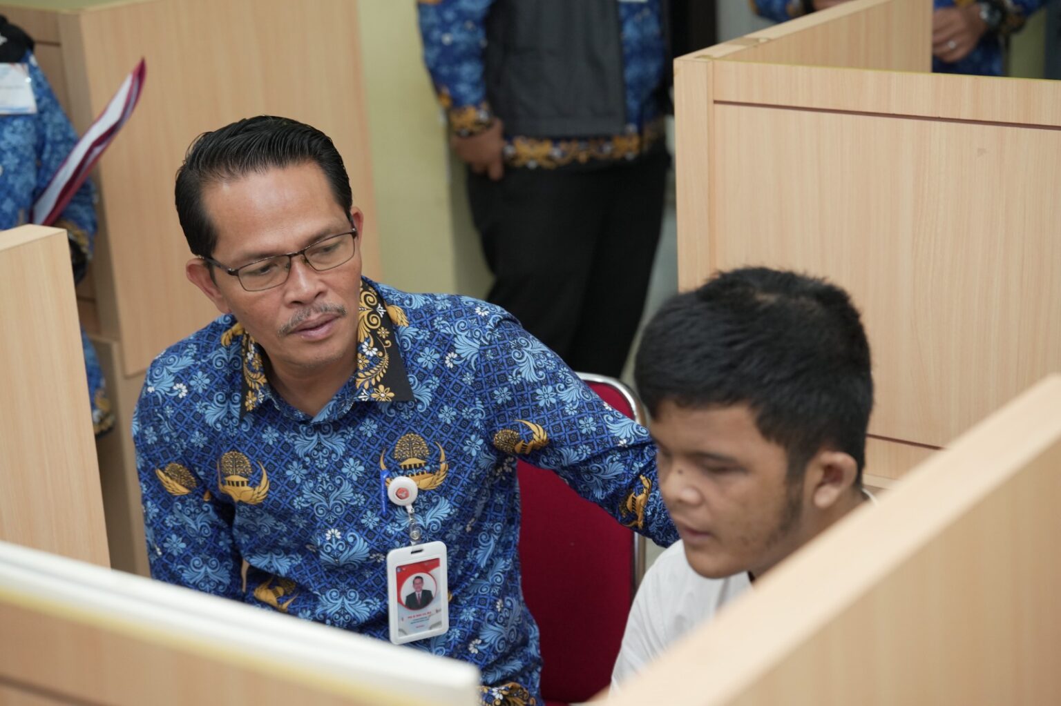 Rektor UNJA, Helmi, meninjau langsung pelaksanaan UTBK. Ia menegaskan bahwa UNJA berkomitmen memberikan kesempatan yang setara bagi seluruh calon mahasiswa.