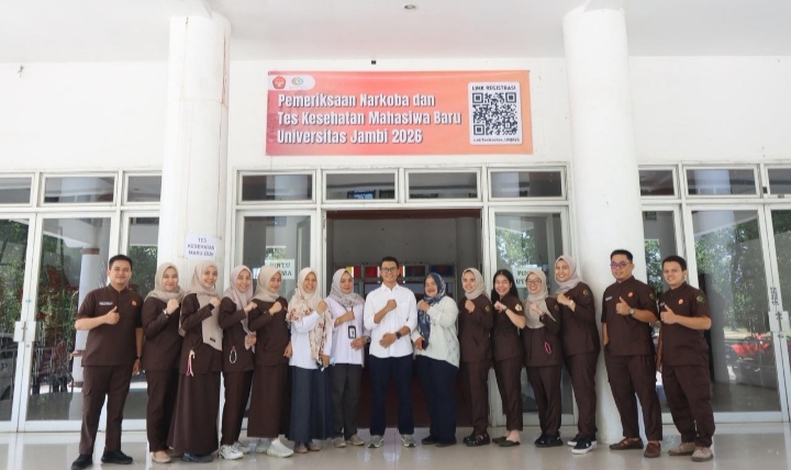 Mendalo – Universitas Jambi (UNJA) mengadakan pemeriksaan kesehatan sekaligus skrining narkoba bagi mahasiswa baru tahun akademik 2026. Kegiatan ini dilaksanakan di Gedung Balairung UNJA Mendalo selama periode 13 hingga 24 April 2026.